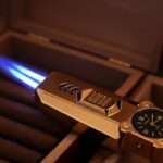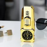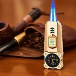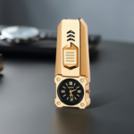 Premium jet flame gas lighter with a bold analog watch design for a unique and stylish look. Features a powerful blue jet flame with smooth slide ignition and an adjustable flame control dial at the bottom. Refillable gas system ensures long-term use (gas not included). Ideal for candles, grills, and daily utility needs.