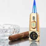 Double Jet Flame Refillable Cigarette Lighter Gas Lighter With Analog Clock Steel Gas Lighter