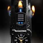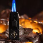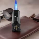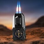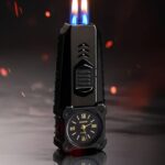 MOUNT WOLF Double Jet Flame Refillable Cigarette Lighter Gas Lighter With Analog Clock Steel Gas Lighter